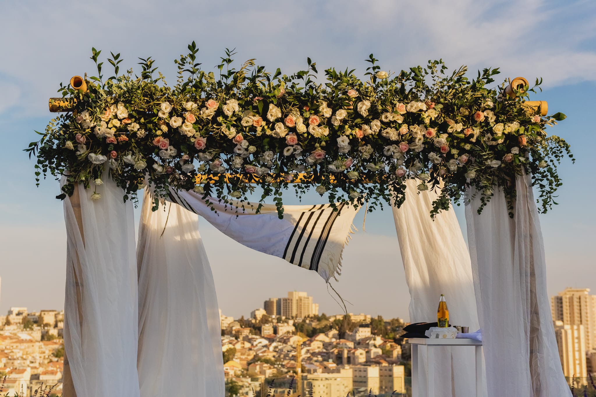 Chuppah: The wedding ceremony takes place under a Chuppah, a canopy representing the home the couple will build together. The Chuppah is often held up by four poles, representing the four pillars of a strong marriage: love, trust, respect, and partnership.